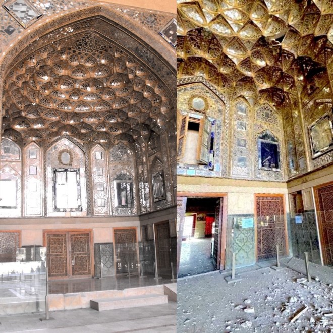 Which is why the latest reports are so painful, and why they must be handled carefully. On March 10, public reporting indicated that a strike on the nearby governorate building in Isfahan’s historic core caused damage to Chehel Sotoun and parts of the wider Safavid ensemble around it. The clearest accounts describe shattered windows, broken wooden elements, at least one major crack in a historic fresco, and damage to Safavid mirror-work, ayeneh-kari, which was itself recently inscribed on UNESCO’s Representative List of the Intangible Cultural Heritage of Humanity. Officials reportedly said that some of the interior painting may have been spared more extensive destruction.
